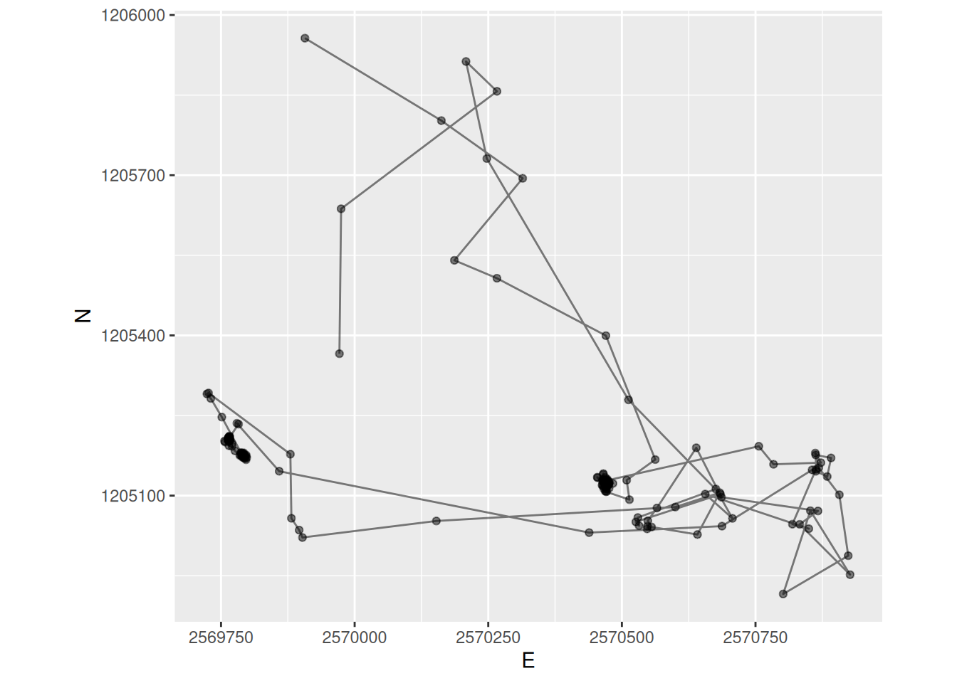 We will demonstrate implementing this method on the wild boar “Sabi”, restricting ourselves to a couple of tracking days. Your task will be to understand this implementation and apply it to your own movement data.