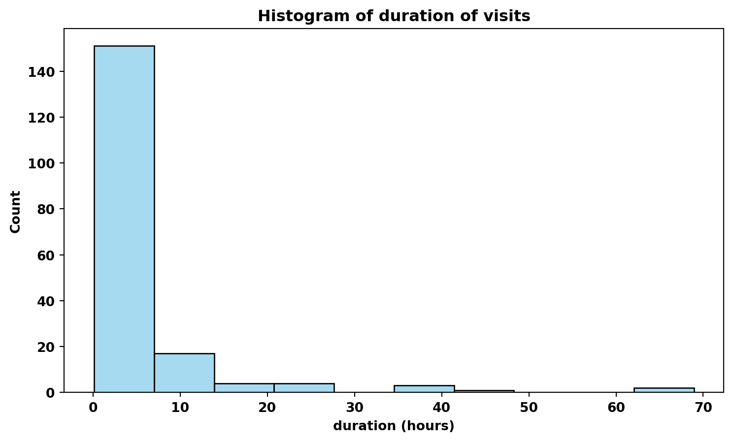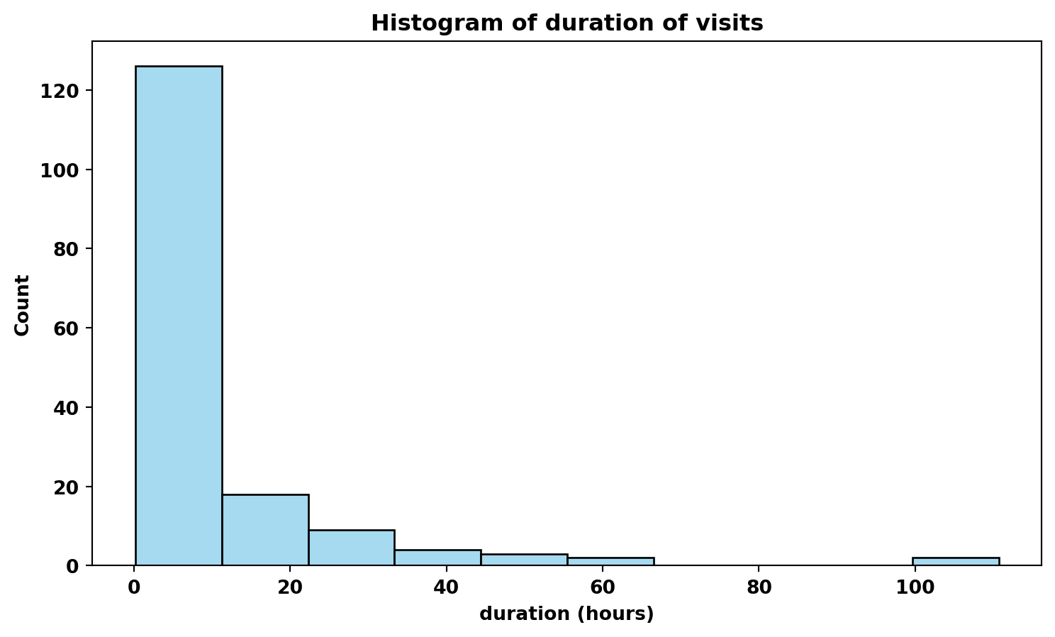 raster_based_intersection_group.plot_histogram('visits','duration')