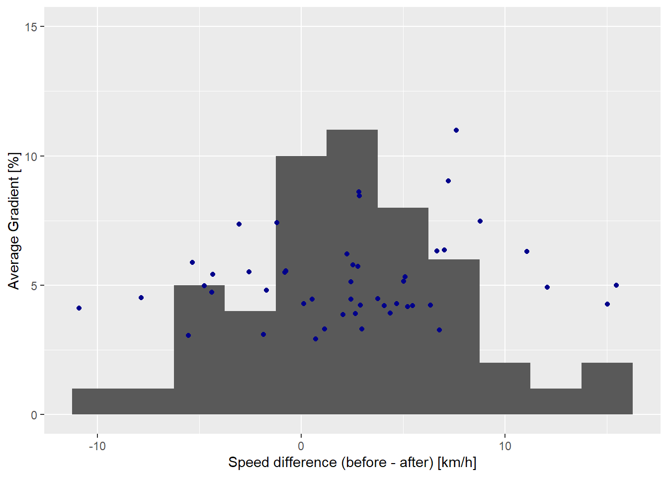 xlab("Speed difference (before - after) [km/h]")+